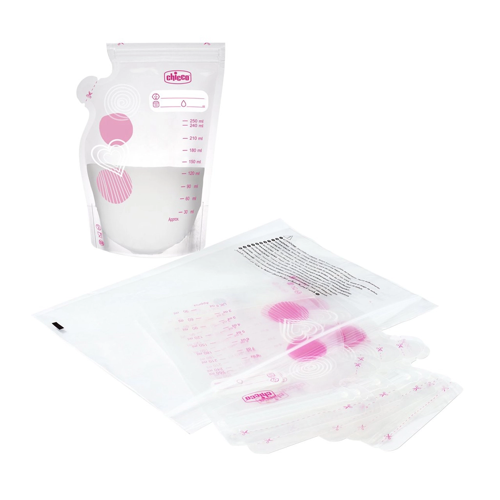 Pungile practice și igienice pentru lapte matern CHICCO, cu volum de 250 ml, sunt pre-sterilizate, au fermoar dublu de siguranță împotriva scurgerilor, bază autoportantă pentru umplere ușoară și spațiu pentru notițe despre dată și cantitate. Ideale pentru depozitare și congelare a surplusului de lapte matern fără pierderea proprietăților nutriționale.