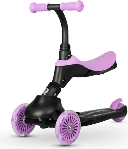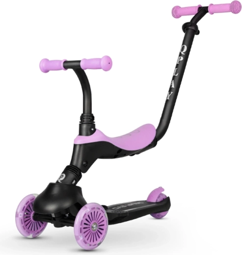 Trotineta și bicicleta de echilibru pentru copii Qplay Sema Evo 3în1 crește odată cu copilul tău, de la 12 luni până la 50 kg. Oferă un șasiu stabil cu trei roți, roți față cu LED, șea detașabilă și mâner parental reglabil pe înălțime pentru ghidare în siguranță. Datorită mecanismului pentru împingere și virare, sistemului de pliere și frânei spate, este ideală atât pentru învățarea echilibrului, cât și pentru mersul independent.