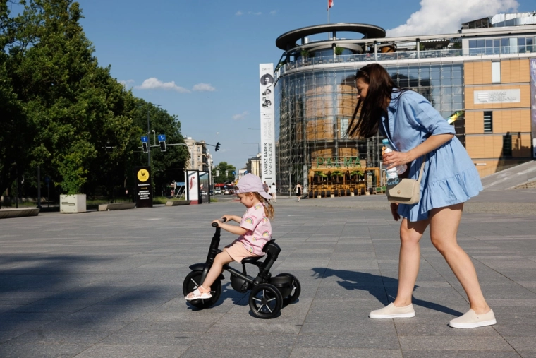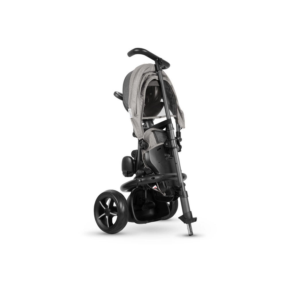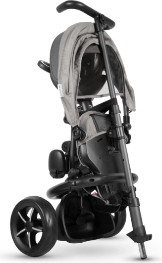 Se pliază în câteva clicuri fără unelte. După pliere, tricicleta poate fi ușor trasă ca un troler – ideală pentru mașină și transport public.