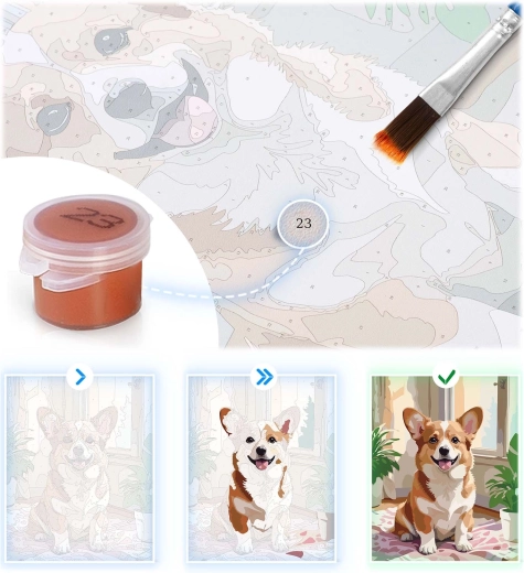 Pachetul include 30 de culori acrilice intense pentru acoperire perfectă, 3 pensule pentru detalii și suprafețe mari și un set de agățare pentru expunerea rapidă a lucrării finite. Pictura după numere este o activitate relaxantă excelentă pentru indivizi și familii și, totodată, o idee de cadou originală.