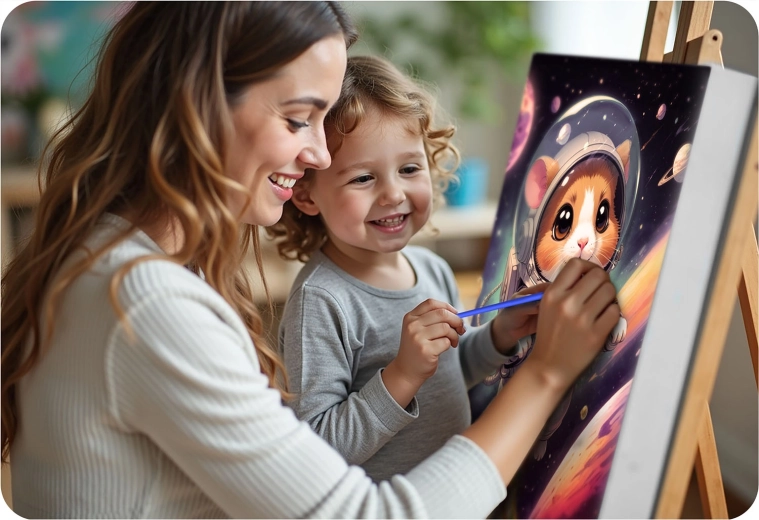 - Distracție creativă pentru mici și mari: pictura împreună dezvoltă răbdarea, concentrarea și bucuria creației.