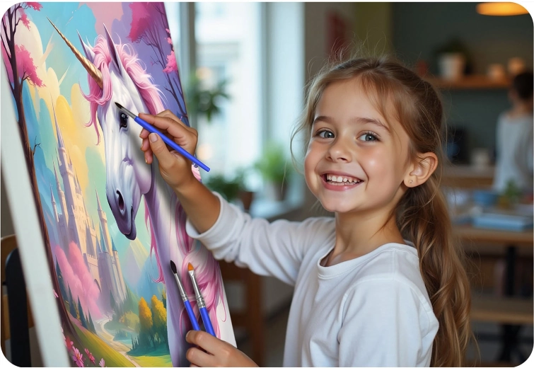 Setul este potrivit pentru copii și adulți și este excelent pentru creație în familie. Pânza de calitate întinsă pe cadru de lemn, culorile acrilice intense și cele trei pensule precise asigură linii curate și detalii fine. După finalizare, vei agăța tabloul cu ușurință folosind accesoriile incluse.