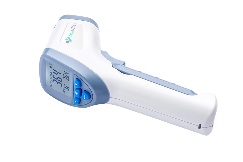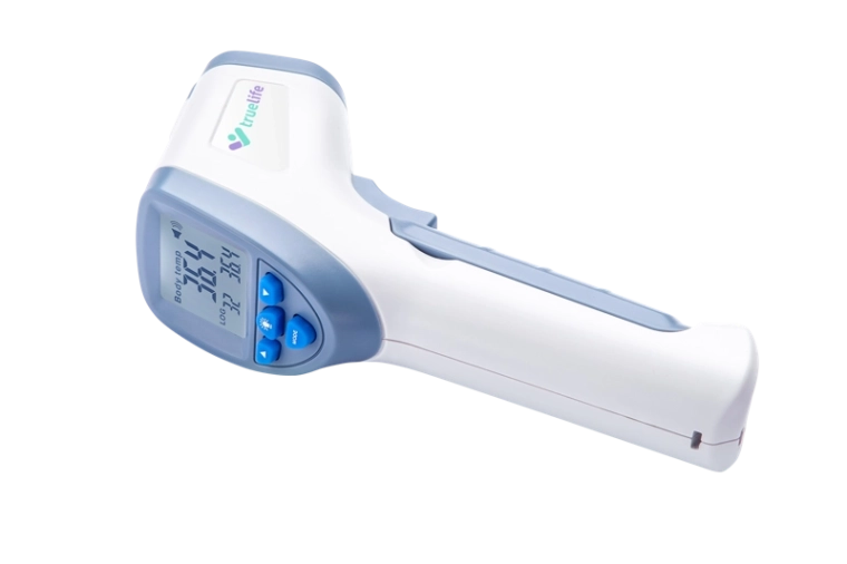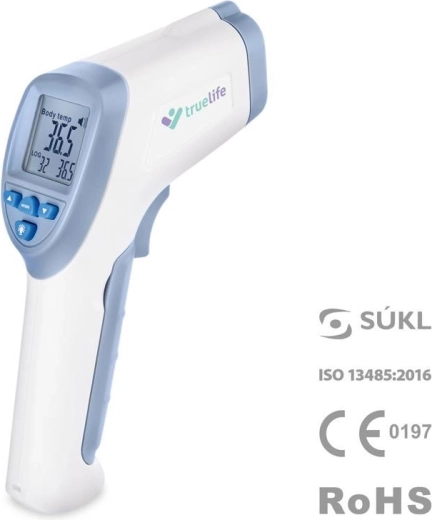 TRUELIFE Care Q7 blue este un termometru fără contact fiabil, pe care îl veți aprecia atât acasă, cât și în călătorii. Este suficient să îl apropiați de frunte la o distanță de 1–3 cm și obțineți instant un rezultat clar pe ecranul LCD iluminat. Precizia de măsurare de până la ±0,2 °C este asigurată de analiza avansată a fasciculului infraroșu.