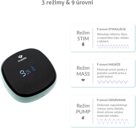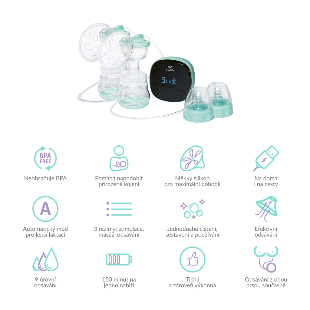 TrueLife Nutrio BP este o pompă electrică dublă fiabilă, concepută pentru mamele care doresc să economisească timp și să maximizeze confortul. Extracția simultană din ambii sâni susține lactația, economisește timp și vă permite să aveți laptele pregătit pentru mai târziu – în frigider rezistă până la 48 de ore. Tehnologia MilkFlowStimulation® ajută la stimularea blândă a fluxului de lapte și este potrivită chiar și în caz de dificultăți la alăptare.