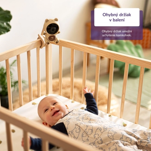 Ursulețul din silicon se potrivește discret în camera copilului. Suportul flexibil facilitează prinderea pe pătuț sau pe raft, oriunde aveți nevoie.