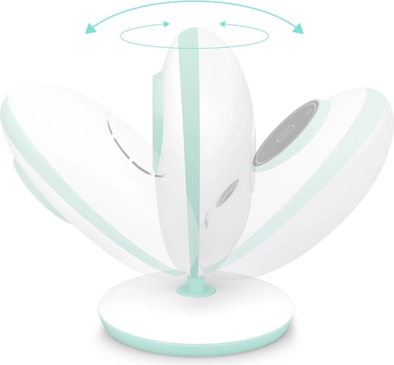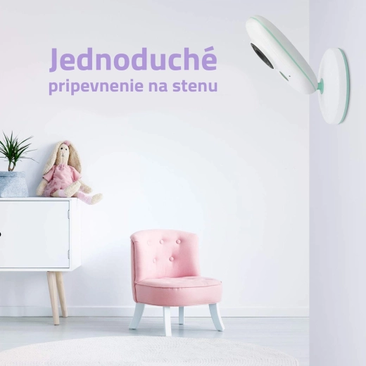 Unitatea pentru părinți oferă, cu modul VOX activ, o autonomie de până la 24 de ore la o singură încărcare. Datorită comunicării bidirecționale, liniștiți copilul cu propria voce sau alegeți una dintre cele 8 melodii liniștitoare. Termometrul integrat monitorizează clima din cameră, iar încărcarea USB‑C cu suport pentru power bank facilitează utilizarea în călătorii sau în aer liber.