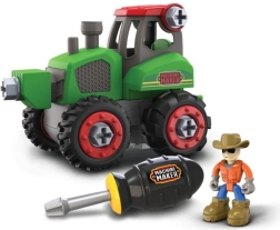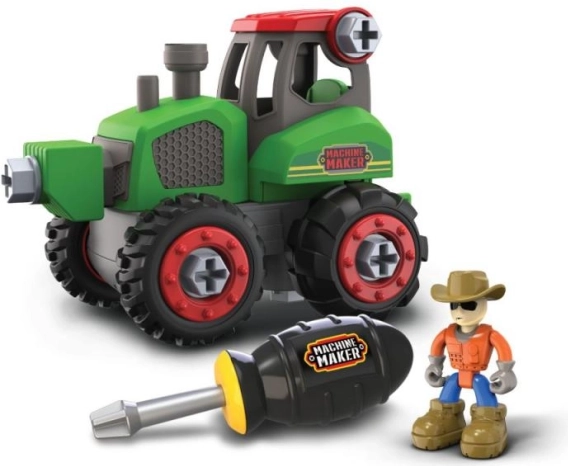 Asamblează, desfiletează și construiește din nou! Setul de construcție cu șuruburi MACHINE MAKER – Fermă le oferă copiilor posibilitatea de a înțelege cum funcționează utilajele din câmp. Datorită șuruburilor mari din plastic și șurubelniței incluse, montajul este ușor și distractiv, dezvoltând răbdarea și coordonarea mână–ochi.