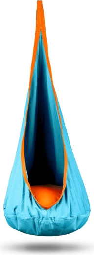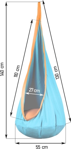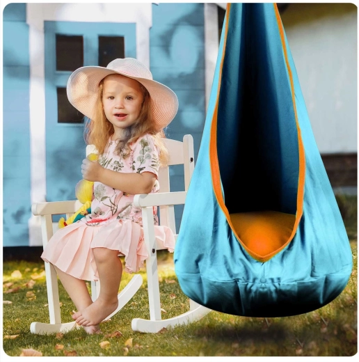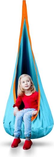 Acest leagăn pentru copii, cu design tip cocon, oferă o zonă liniștită, sigură și plăcut închisă pentru odihnă și joacă. Datorită șezutului adânc cu pernă moale, copiii pot sta comod, pot citi și se pot legăna ușor. Ochiurile de prindere rezistente și cusăturile de calitate asigură durabilitate și utilizare sigură atât în interior, cât și în exterior.
