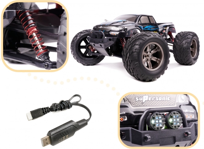 Descoperă lumea aventurilor off-road cu Monster Truck-ul nostru teleghidat, în nuanțe atrăgătoare de albastru!