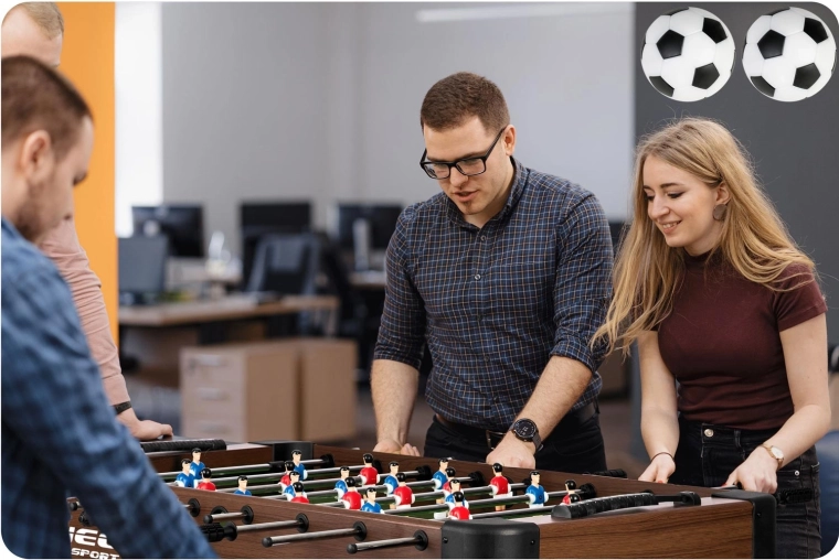 Redă viteza și precizia jocului tău cu setul de calitate de 2 mingi pentru fotbal de masă. Datorită materialului durabil și suprafeței texturate, oferă contact fiabil cu figurinele și revenire lină în joc.