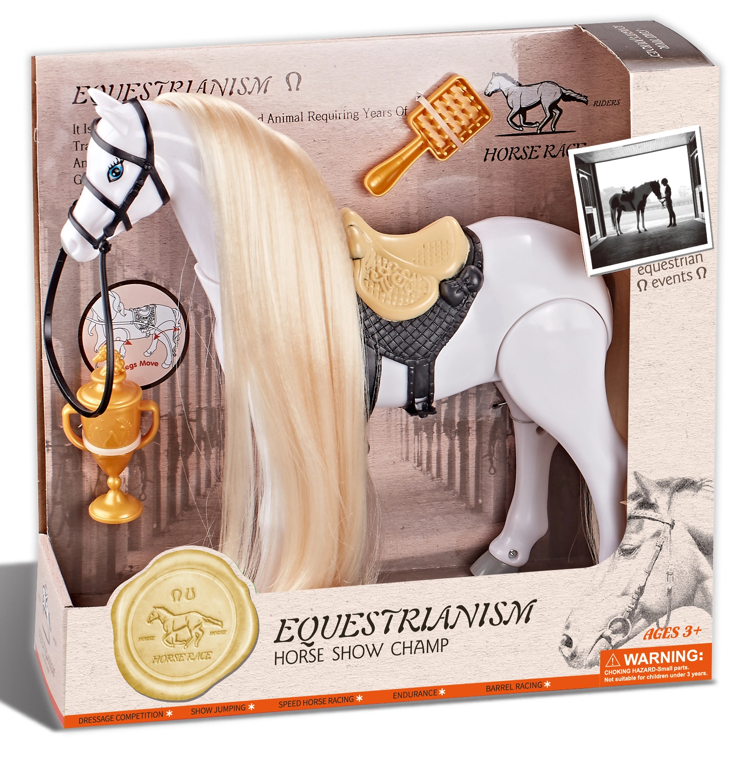 Acest set de călărie îi va încânta pe toți micii iubitori de cai. Calul alb cu echipament de călărie și figurina oferă detalii autentice și efecte sonore, care dau viață fiecărei aventuri în grajd și pe hipodrom. Copiii se pot cufunda în roluri de călăreți, îngrijitori de cai și campioni ai competițiilor.