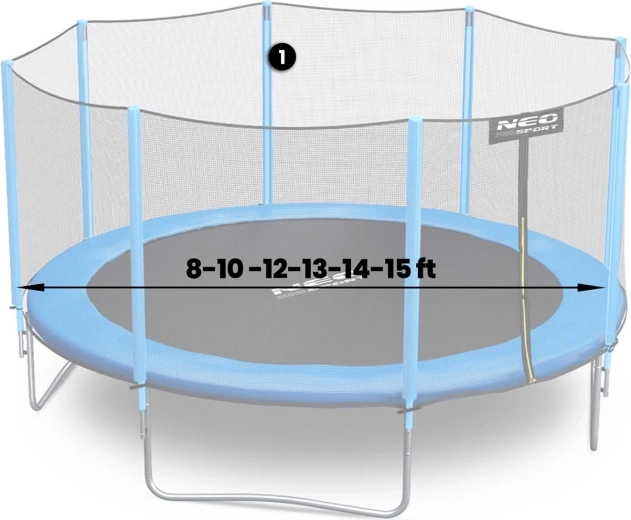 - Compatibilitate 8–15 ft – pentru trambuline cu diametrul 252–465 cm cu plasă exterioară.
