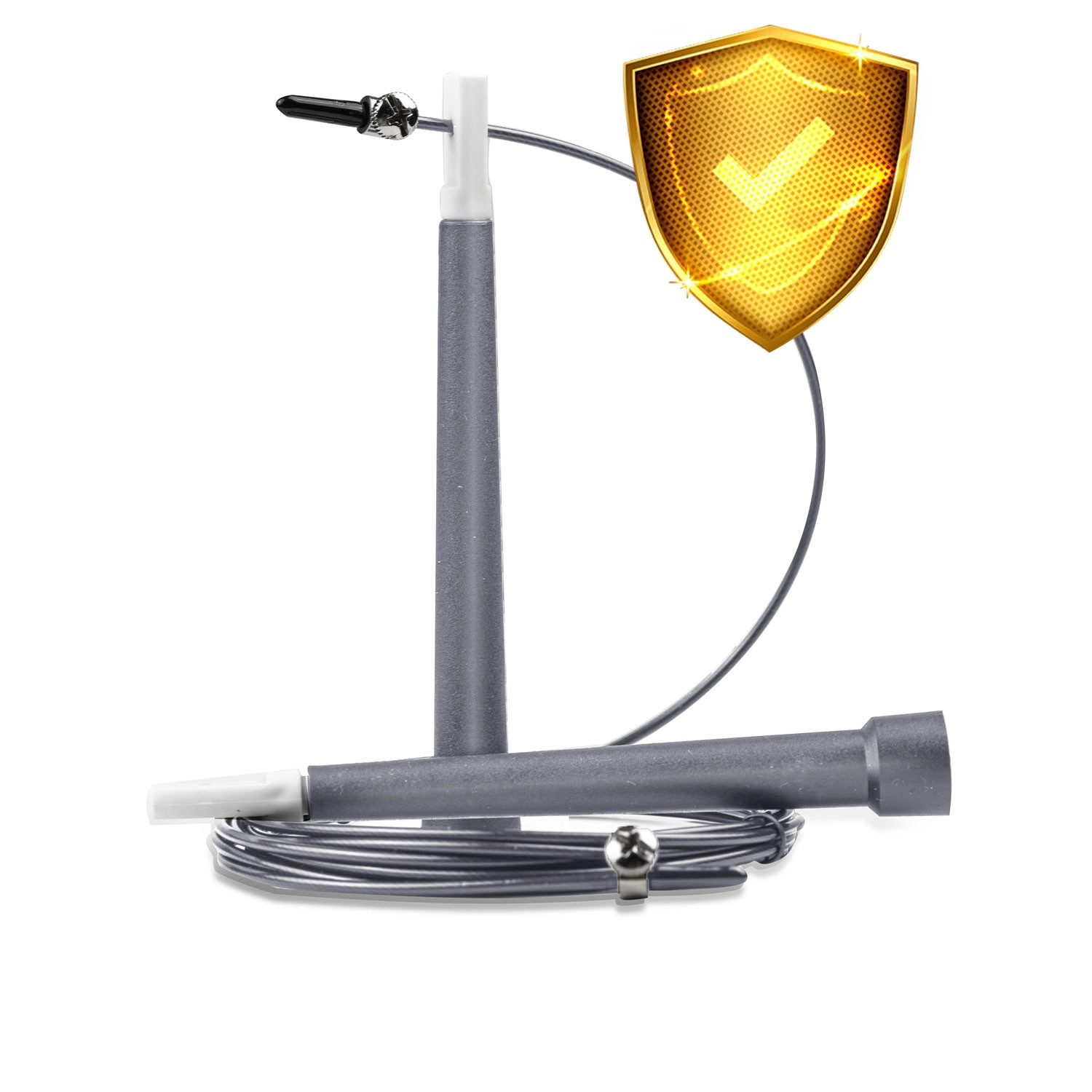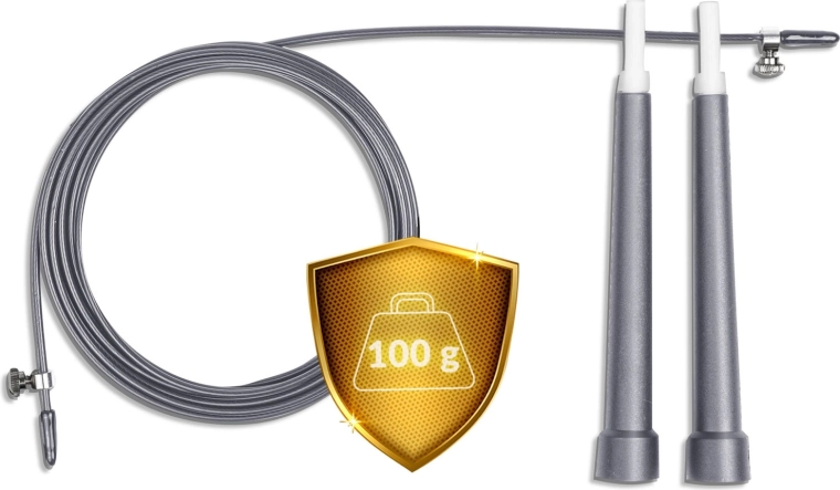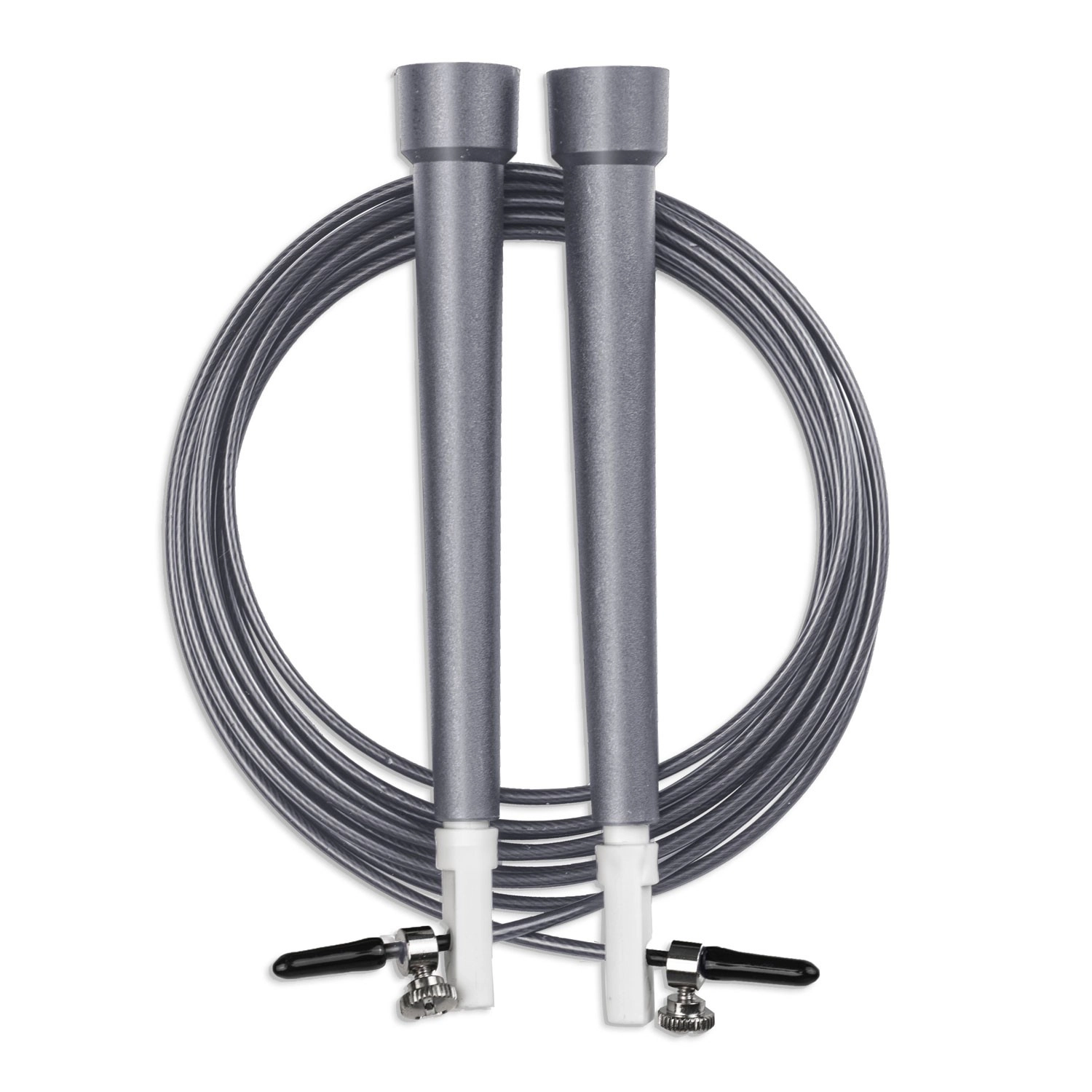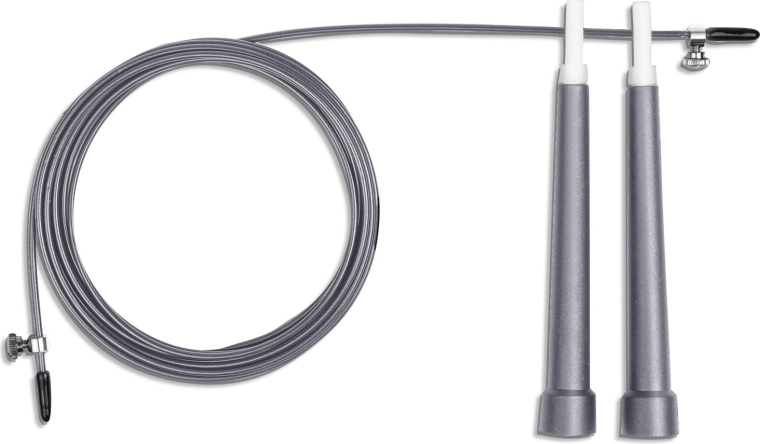 Cablu subțire, împletit, din oțel, în mânecă de protecție, asigură frecare minimă și rotație extrem de rapidă – ideal pentru cardio, double-unders și antrenamente de viteză.
