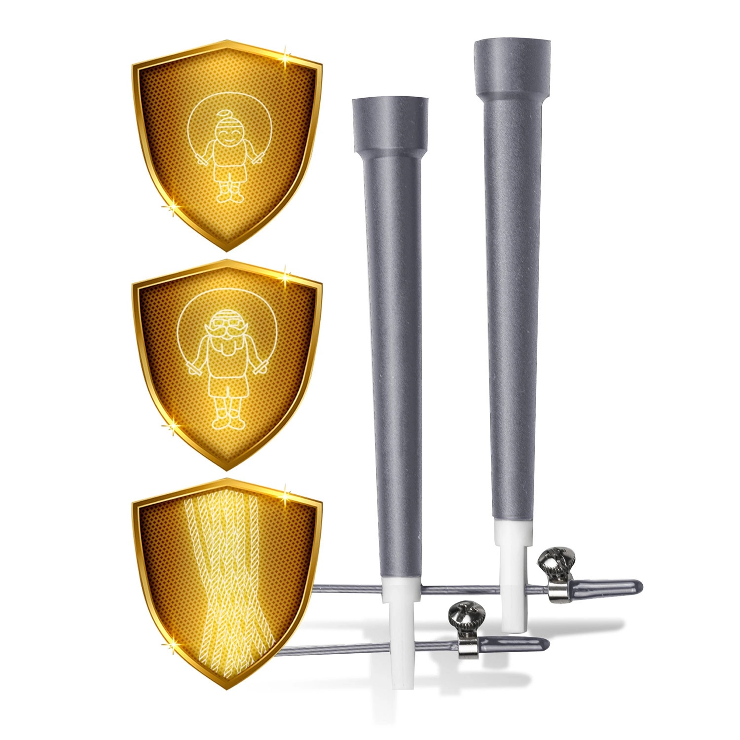 Șuruburile metalice integrate la capetele cablului permit adaptarea rapidă și sigură a lungimii în funcție de statura și stilul de antrenament.