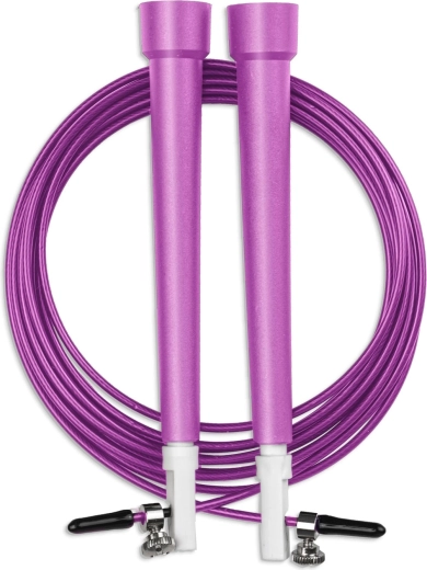 Sfoara de sărit NEO-SPORT mov este concepută pentru rotații rapide și performanță stabilă în antrenamente cardio, de box și pe intervale. Cablu de oțel împletit în izolație plastic alunecă excelent, este rezistent la deteriorare și permite un ritm precis. Datorită lungimii ajustabile poți adapta cu ușurință sfoara la înălțimea ta, până la aproximativ 195 cm.