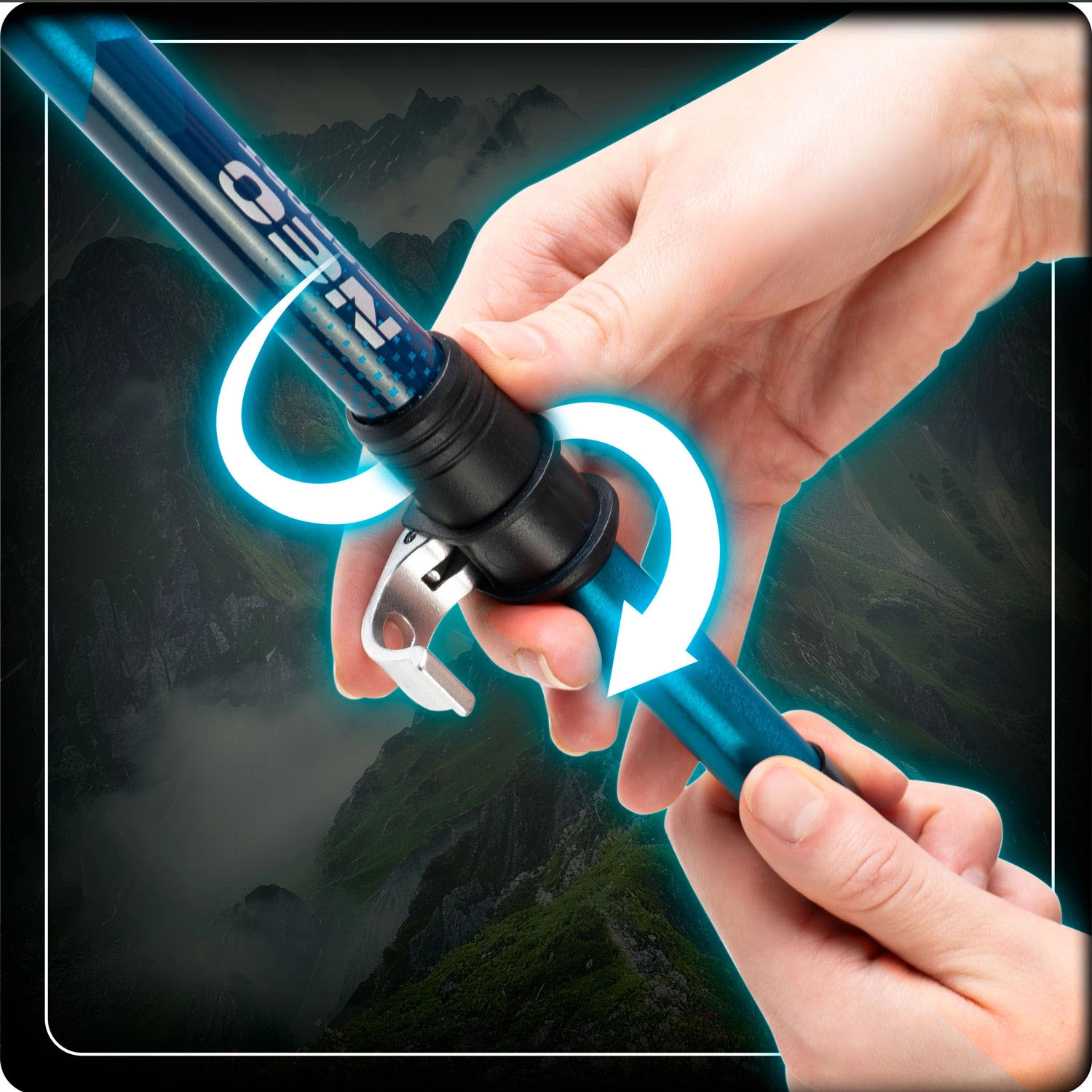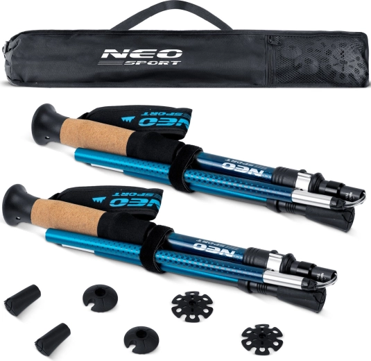 Bețele de trekking Neo-Sport sunt un sprijin de încredere pe poteci montane, trasee prin pădure și pe suprafețe urbane. Aliajul de aluminiu AL 7075 asigură rezistență ridicată la o greutate redusă (doar 355 g/buc.), în timp ce mânerul din plută ergonomic și chinga moale, reglabilă oferă confort chiar și în ture de o zi întreagă.