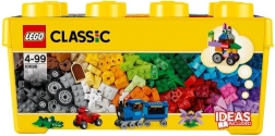 LEGO Classic Cutia creativă de dimensiune medie oferă posibilități nelimitate de construcție creativă cu cărămizi în 35 de culori diferite. Include, de asemenea, ferestre, ochi și multe roți, îmbogățind experiența de joacă.