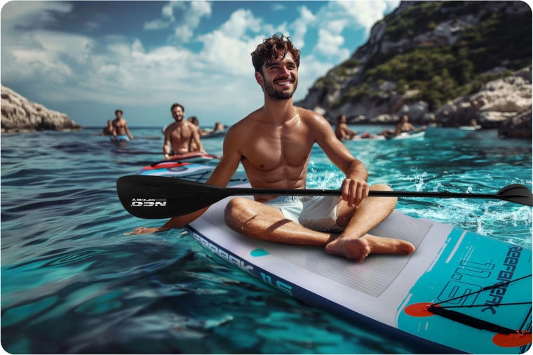 În pachet găsiți tot ce aveți nevoie pentru a porni imediat pe apă: pompă manuală, vâslă reglabilă din aluminiu, leash de siguranță, aripioară centrală detașabilă, kit de reparații, rucsac și scaun cu spătar și buzunar bonus pentru vâslit confortabil în poziție șezândă. Alegerea ideală pentru recreere, fitness și excursii.