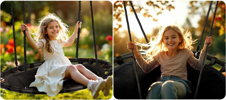 Acest leagăn tip cuib, robust, este o alegere excelentă pentru copii și adulți. Cadrul din oțel cu căptușeală moale din PE garantează stabilitate, siguranță și durată lungă de viață, iar șezutul din materialul rezistent Oxford 600D este impermeabil și ușor de curățat. Datorită diametrului de 120 cm, leagănul poate găzdui confortabil și doi copii.