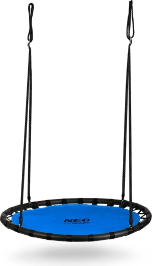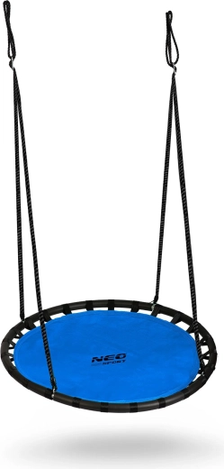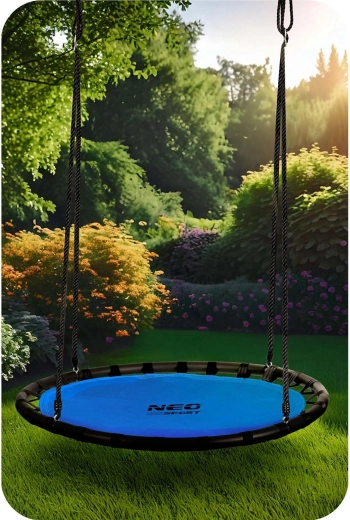 Leagănul rotund tip cuib de barză NEO-SPORT Swingo este ideal pentru grădină, terasă și locul de joacă. Șezutul lat și stabil, din material Oxford 600D, este impermeabil și ușor de curățat, făcând față utilizării zilnice în aer liber. Cadrul robust din oțel cu căptușeală din spumă PE și frânghiile puternice din poliester asigură stabilitate ridicată și siguranță la legănat.