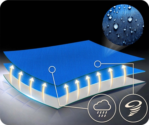 Țesătura robustă Oxford 600D este rezistentă la uzură și umezeală. Se curăță ușor și menține confortul în utilizarea zilnică în grădină.