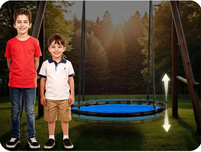 Leagănul este echipat cu reglare lină a înălțimii până la 160 cm, astfel îl puteți adapta cu ușurință înălțimii și vârstei copilului – crește odată cu el. Datorită diametrului mare de 120 cm, se poate legăna confortabil un copil sau mai mulți, ori vă puteți relaxa și dvs. – greutatea maximă admisă este de 150 kg.