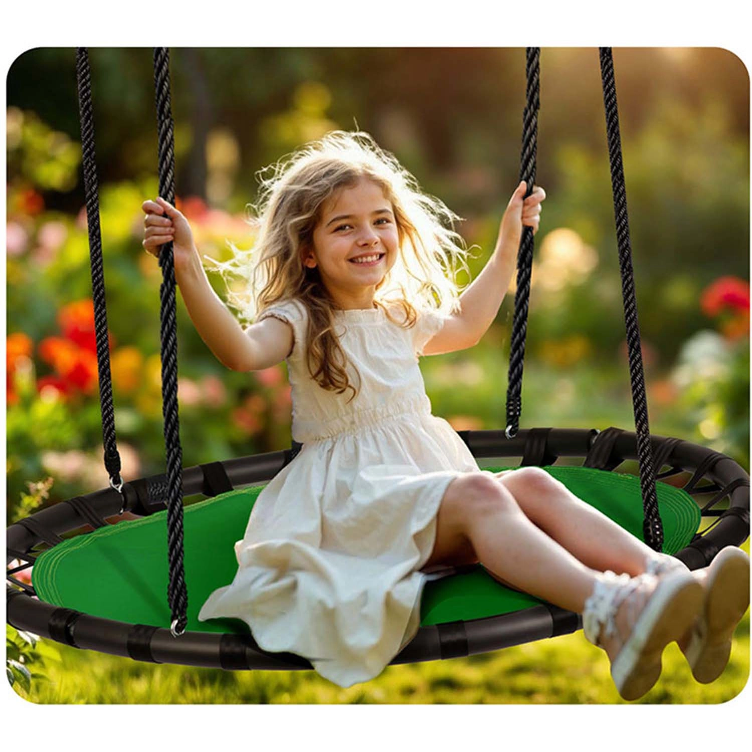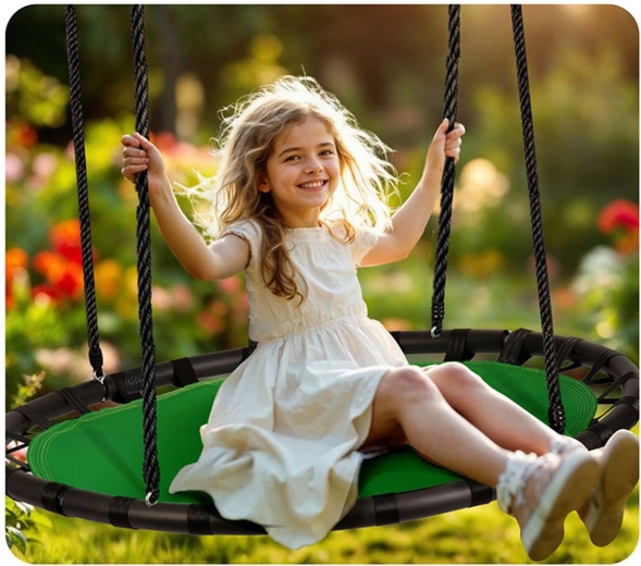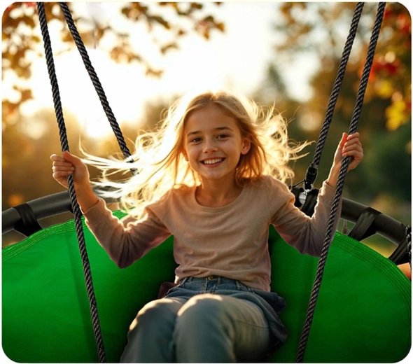 Datorită frânghiilor reglabile, ajustezi cu ușurință înălțimea în funcție de vârsta și statura copilului. Cordoanele din poliester rezistente mențin stabilitatea și oferă o mișcare lină, fluidă. Instalarea este rapidă, iar întreținerea minimă – o alegere ideală pentru utilizare îndelungată și sigură în aer liber.