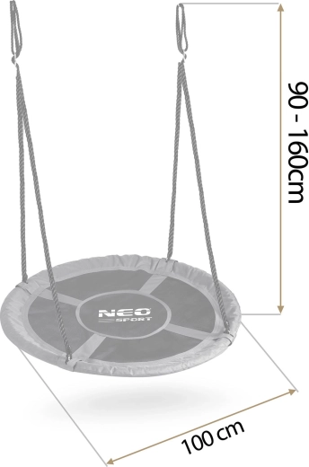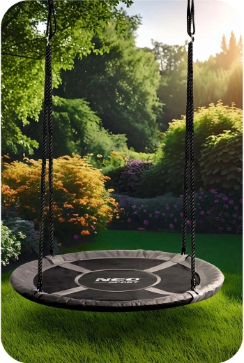 Leagănul circular NEO-SPORT Swingo 100 cm este o alegere excelentă pentru grădină, terasă sau locul de joacă. Cadrul robust din oțel, acoperit cu spumă moale, oferă protecție în timpul legănatului, iar șezutul durabil din material Oxford 600D este rezistent la apă și ușor de curățat. Datorită capacității mari de încărcare, este potrivit atât pentru copiii mici, cât și pentru cei mai mari – și suportă legănatul în doi.