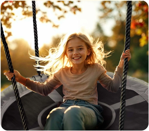 Diametrul rotund generos oferă copiilor și adulților suficient spațiu pentru a sta sau a se întinde. Ideal pentru legănare, relaxare și distracție împreună.