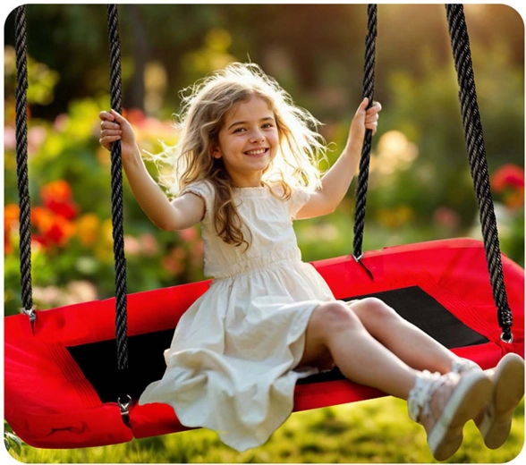 Țesătura robustă Oxford 600D rezistă la ploaie și la utilizarea zilnică. Suprafața se șterge simplu, iar leagănul este din nou gata de distracție.