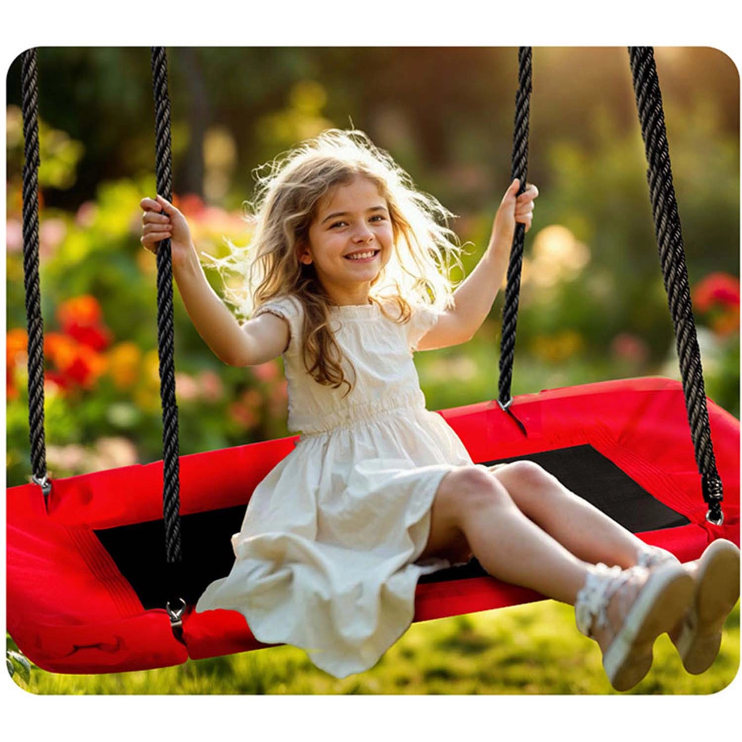 Datorită funiilor reglabile cu lungime maximă de 160 cm, puteți adapta cu ușurință înălțimea în funcție de vârsta și statura copilului. Cordonurile împletite rezistente și inelele metalice de calitate asigură o prindere fiabilă, atât în casă, cât și în grădină. Capacitatea maximă de 150 kg permite distracție împărtășită de mai mulți copii sau relaxare comodă în poziție culcată.