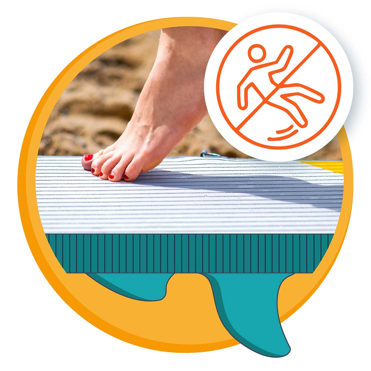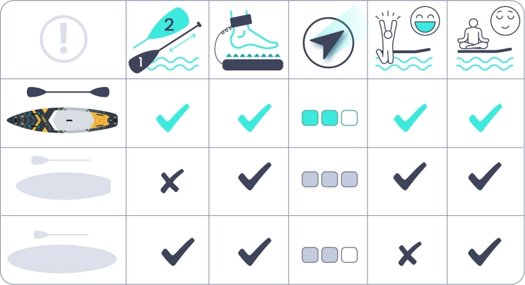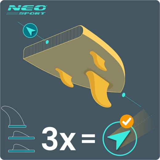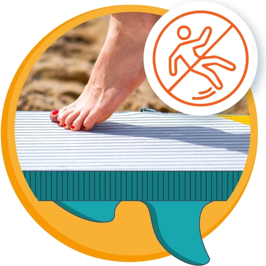 Platforma lată cu grosime de 15 cm, deck-ul EVA antiderapant și cele trei aripioare direcționale oferă echilibru și control excelente – ideal pe ape liniștite și valuri mici.
