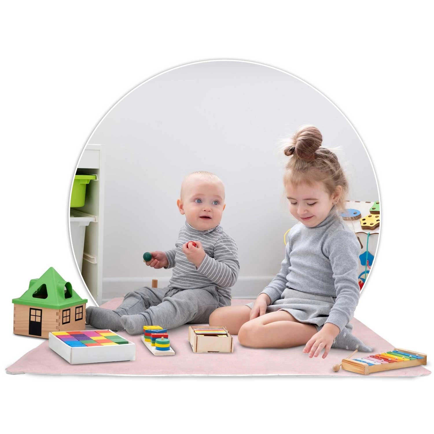 Pachetul include saltea izolantă cu protuberanțe antiderapante, care protejează de frigul podelei și crește confortul la joacă și lectură. Trei pernuțe pufoase și luminițe decorative cu ghirlandă creează o atmosferă intimă. Fereastra cu roletă și intrarea rabatabilă încurajează jocul creativ și se aliniază natural principiilor Montessori.
