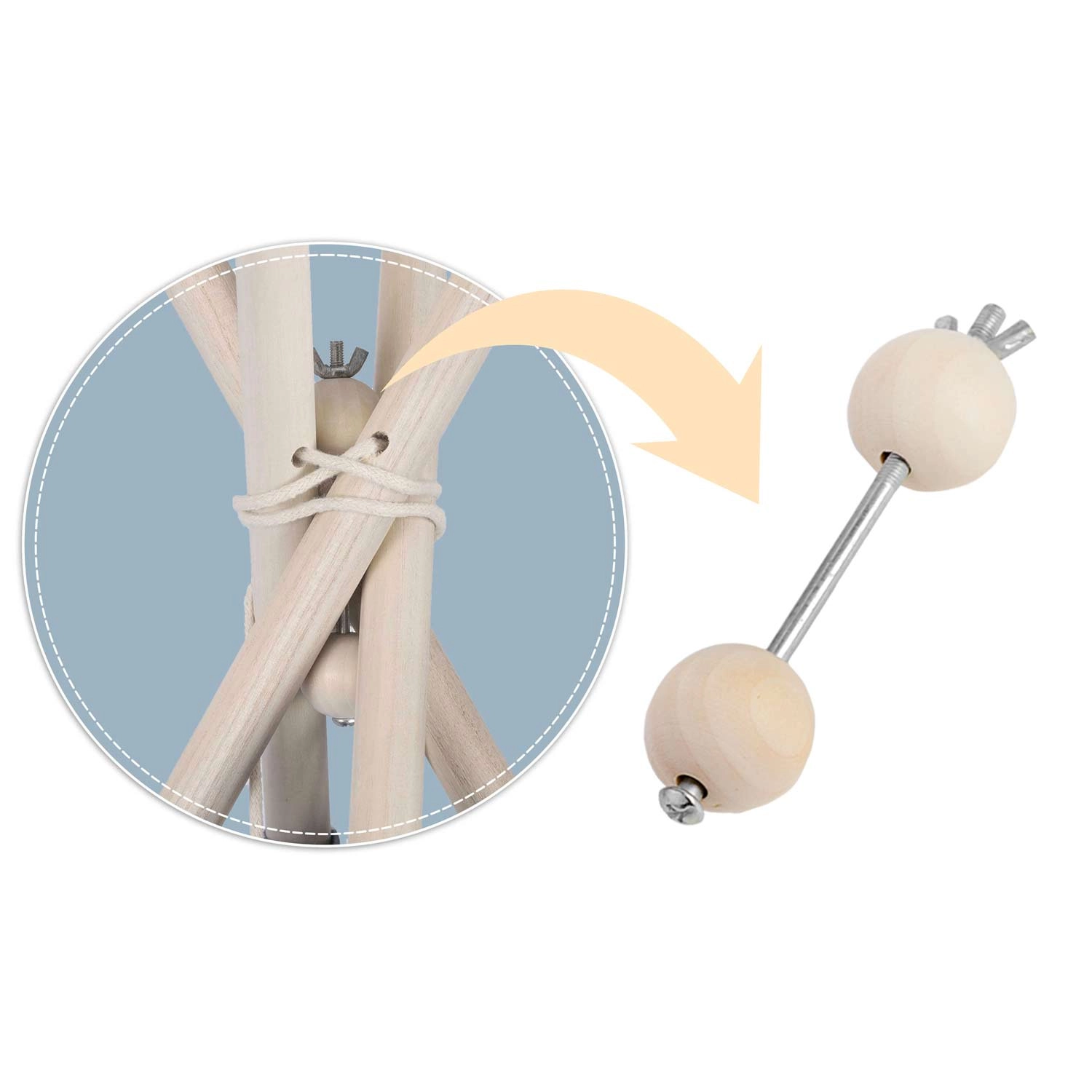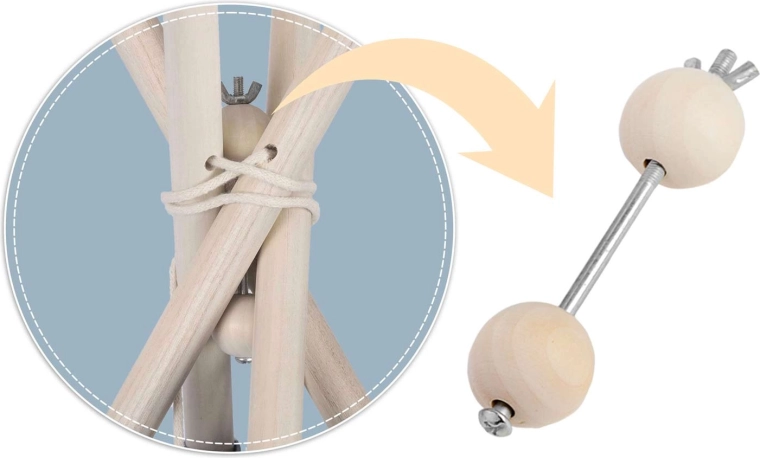 Patru bețe din lemn de pin și stabilizatorul inclus mențin forma teepee-ului, sporesc siguranța și asigură rigiditate în timpul jocului.