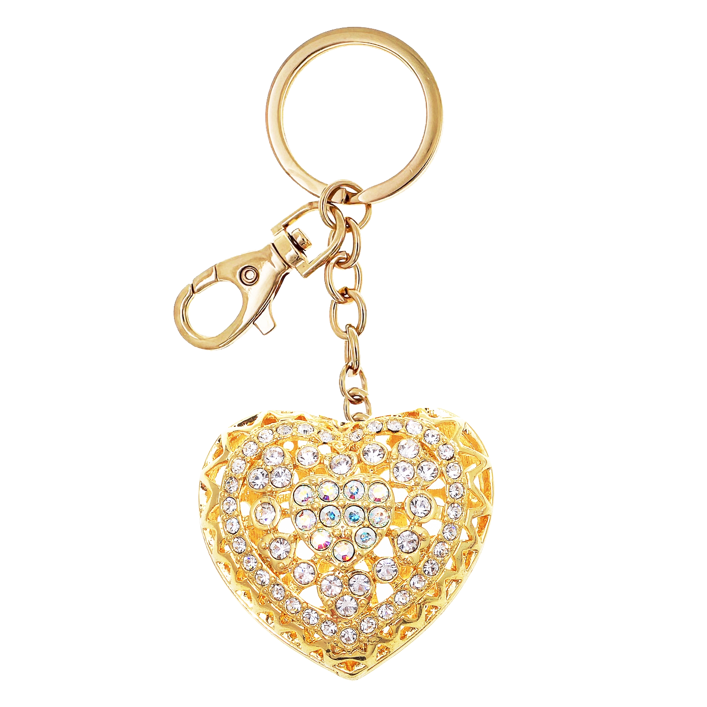 Breloc stilat în formă de inimă cu strălucire aurie, care oferă cheilor tale eleganță și șarm personal. Este ușor, rezistent și se atașează ușor de chei sau de geantă – accesoriul ideal pentru purtare zilnică sau un cadou plăcut.