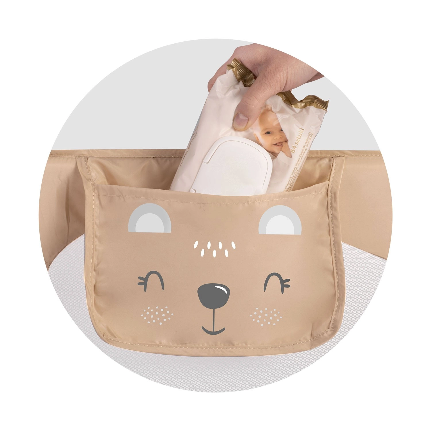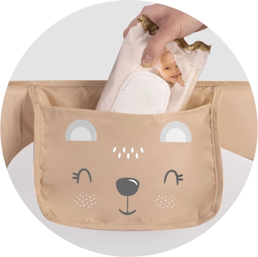 Oțelul ușor, dar rezistent, asigură o durată de viață îndelungată. Panoul din plasă oferă vizibilitate excelentă asupra copilului și permite circulația aerului pentru un somn confortabil.