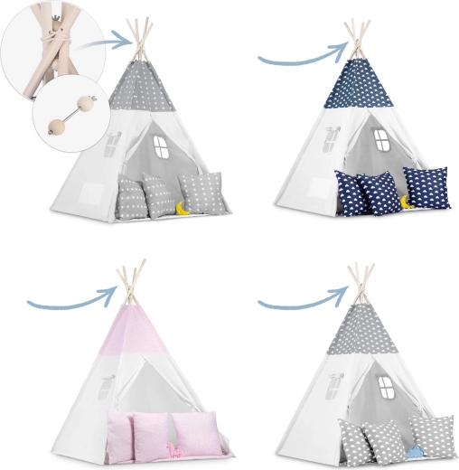 Asigură-te că bețele nu se depărtează și că cortul își păstrează forma. Stabilizatorul mărește imediat stabilitatea și siguranța tipi-ului pentru copii.