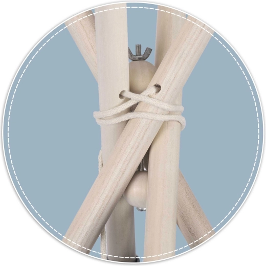 Stabilizatorul din lemn pentru tipi NUKIDO este un ajutor ingenios care unește ferm bețele și previne depărtarea lor. Tija metalică cu filet și piuliță fluture permite o strângere ușoară și precisă, în timp ce bilele netede din lemn servesc drept mânere confortabile. Rezultatul este o construcție solidă și un înveliș al cortului frumos întins.