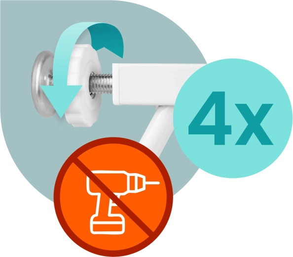 Fixarea prin presiune cu plăcuțe laterale permite instalarea fără unelte și fără a deteriora tocurile ușilor sau pereții. Demontarea este la fel de rapidă.