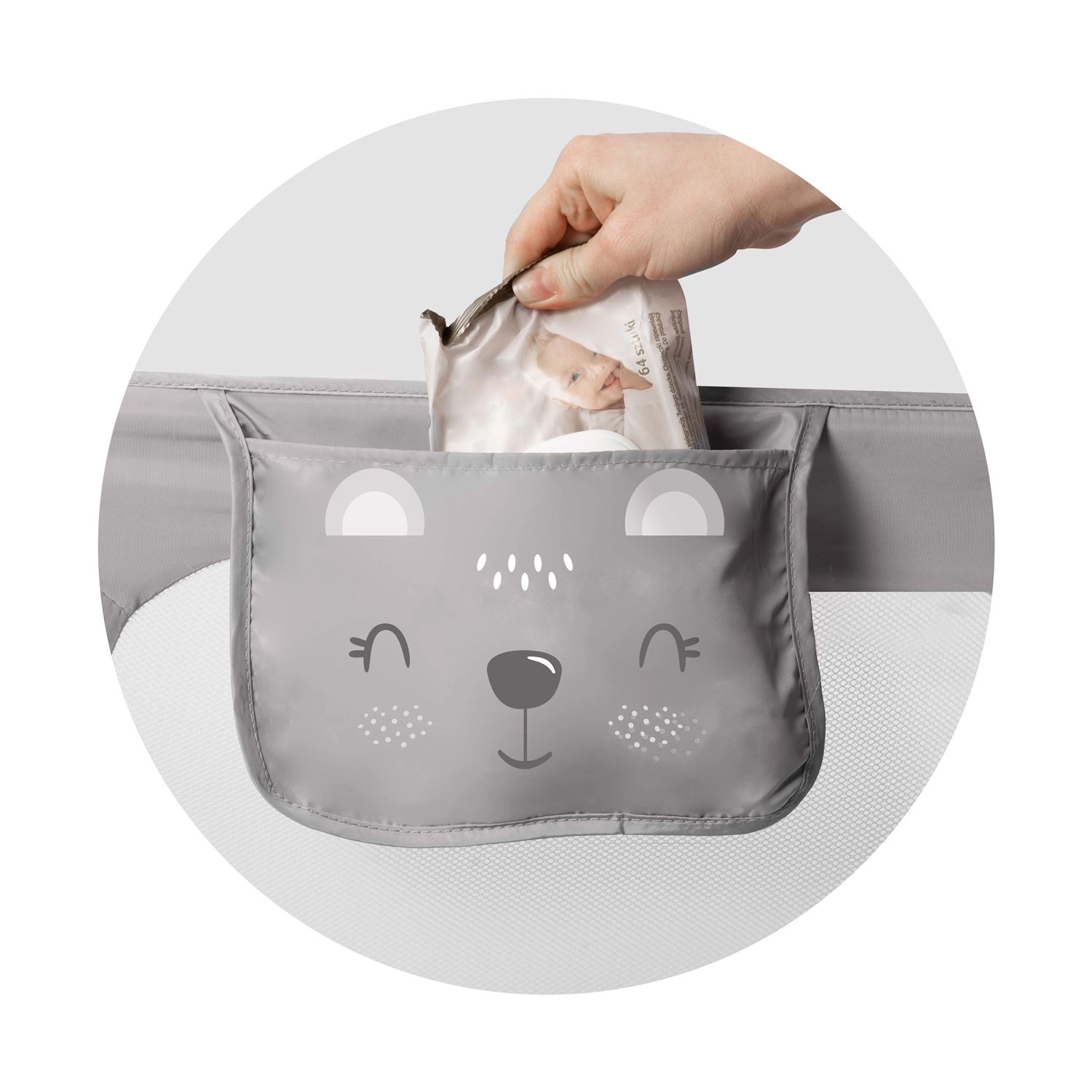 Montajul este rapid și flexibil: bariera se poate fixa direct pe cadrul patului cu șuruburi sau se poate asigura cu curelele SafetyBelt – pentru stabilitate maximă, metodele pot fi combinate. Sistemul de blocare previne plierea nedorită în timpul utilizării, iar buzunarul practic păstrează suzeta, șervețelele sau jucăriile mici mereu la îndemână.