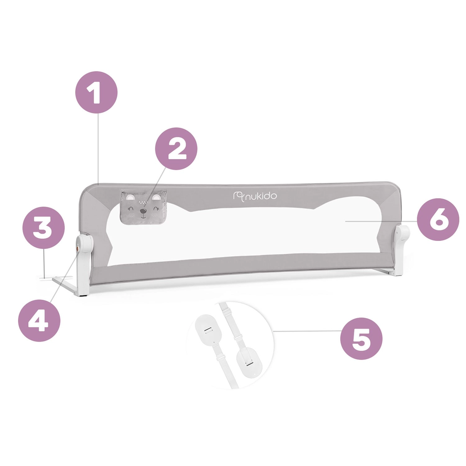 Bariera de pat Nukido, în culoare gri, este soluția ideală pentru somnul în siguranță al copiilor. Construcția rezistentă din oțel ușor, dar solid, garantează o durată de viață îndelungată, în timp ce plasa respirabilă oferă vizibilitate excelentă și circulație optimă a aerului. Datorită rabatării până la 180°, bariera se poate coborî ușor când aveți nevoie de acces la pat, fără demontare.