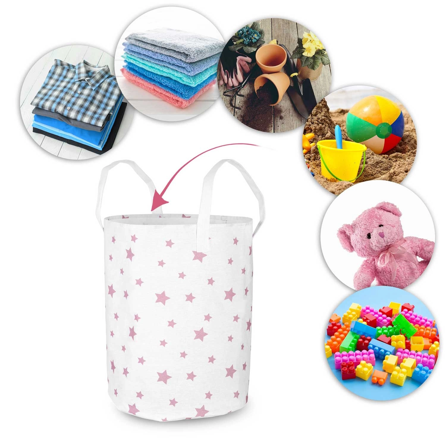 Formatul încăpător și mânerele solide asigură utilizarea confortabilă zi de zi. Suprafața se întreține simplu, astfel încât coșul rămâne curat și prezentabil pentru mult timp. Îl poți folosi pentru jucării, plușuri, seturi de construcție, rufe, prosoape sau accesorii sezoniere.