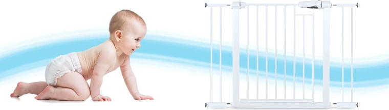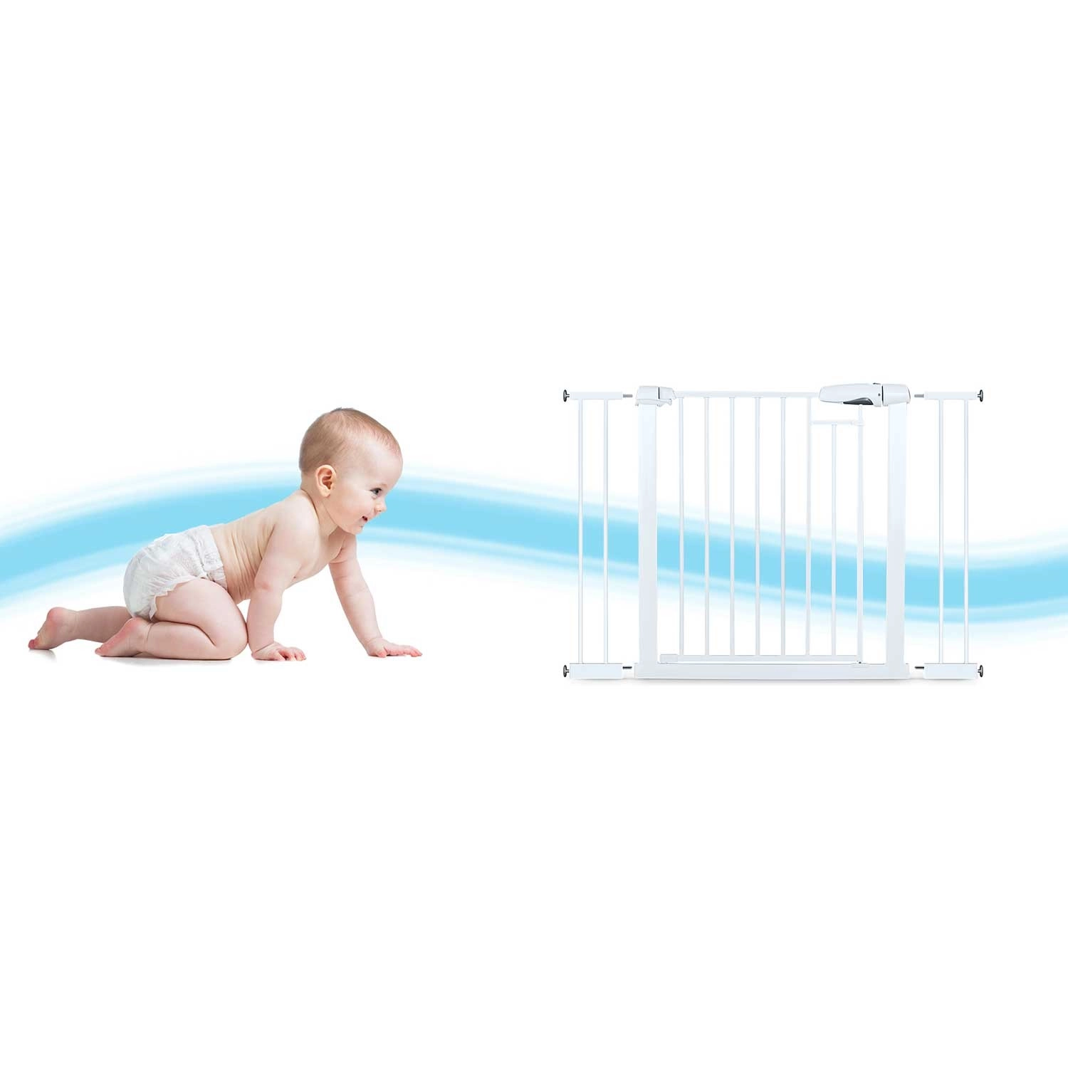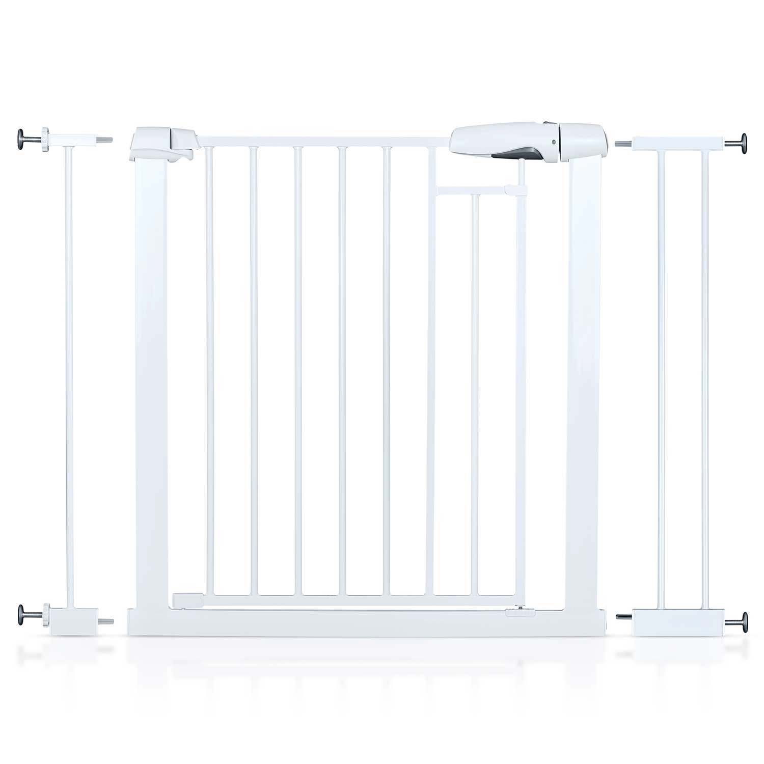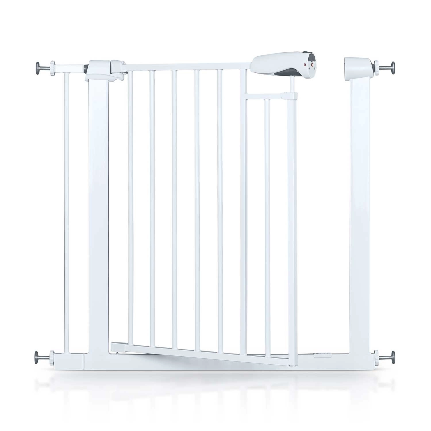 Poarta de siguranță NUKIDO protejează copiii și animalele de companie de accesul la scări sau în zone periculoase. Se montează fără găurire prin sistem de presiune, are structură metalică albă și închidere magnetică cu posibilitatea de deschidere cu o singură mână. Datorită intervalului reglabil 76–104 cm, se potrivește perfect în uși și treceri.