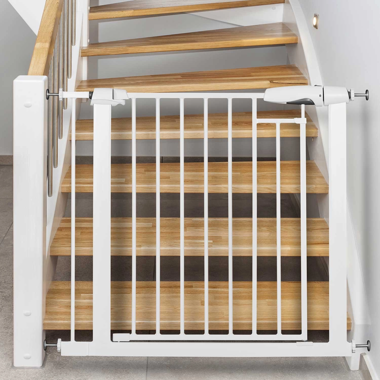 - Lățime universală 76–104 cm: potrivită pentru uși și treceri; în pachet 2 extensii.