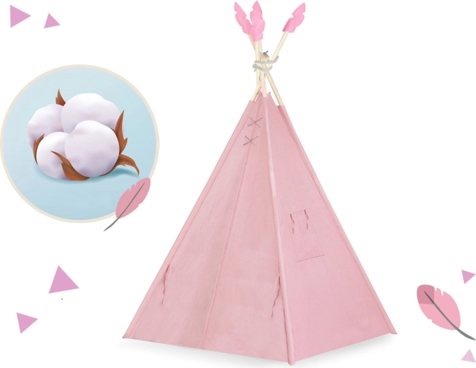 Teepee-ul pentru copii NUKIDO, într-o nuanță delicată de roz, stimulează imaginația și creează un loc liniștit pentru relaxare, lectură și jocuri creative. Datorită amestecului de fibre naturale cu bumbac premium (gramaj 175 g/m²), țesătura este moale, respirabilă și rezistentă, în timp ce bețele din molid/pin oferă stabilitate structurii. Ferestrele practice cu roletă și șnururi asigură ventilație și vizibilitate facilă.