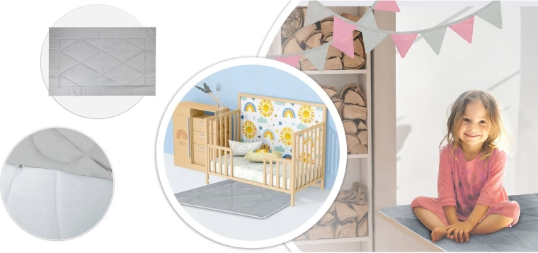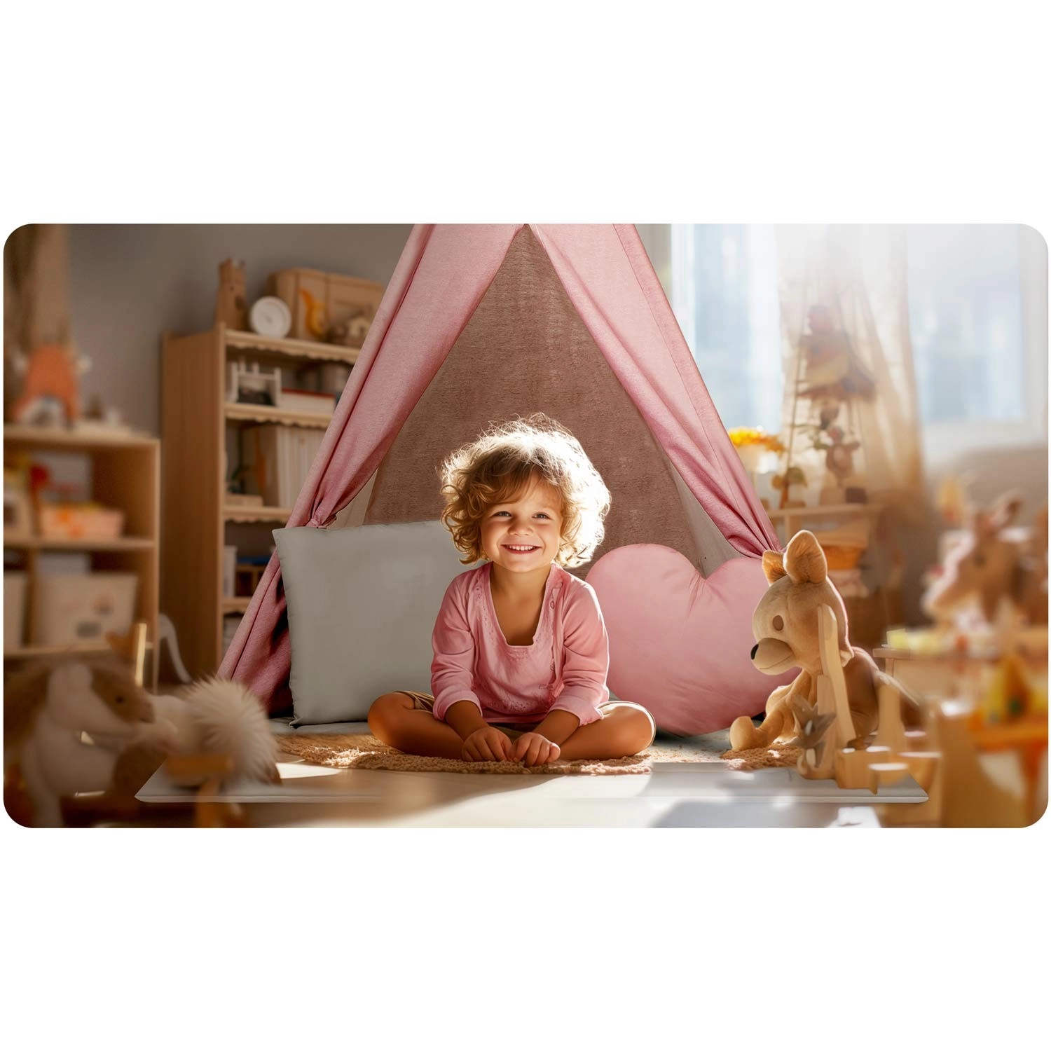 Asamblarea rapidă și dimensiunile compacte după pliere vă permit să luați teepee-ul oriunde – în living pentru lecturi împreună, în camera copilului ca colț de lectură liniștit sau pe terasă pentru observarea naturii. Salteaua multifuncțională poate fi folosită și separat ca covoraș moale.