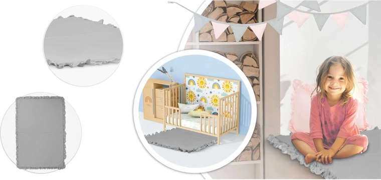 Textilul cu bumbac premium și greutate de 175 g/m² este plăcut la atingere, respiră bine și rezistă la joaca de zi cu zi. Ideal pentru un mediu confortabil și sigur pentru copii.