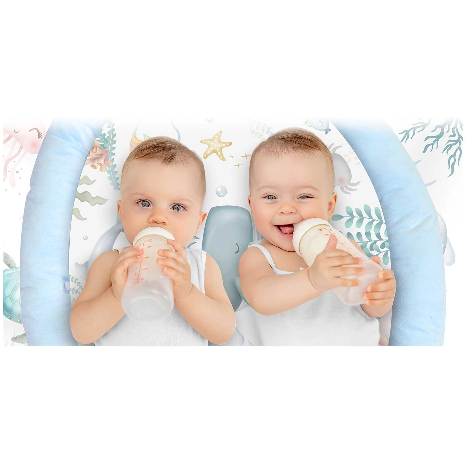 Covorașul de joacă interactiv Nukido Ocean oferă copiilor un loc sigur și confortabil pentru joacă și odihnă. Include 2 arcade detașabile, 7 jucării multifuncționale, inclusiv oglindă, zornăitori și pârâitoare, precum și o perniță foarte moale pentru timpul petrecut pe burtică. Se pliază ușor, are o suprafață moale, ușor de curățat și o paletă de culori oceanice stimulatoare pentru a susține dezvoltarea senzorială și motorie a bebelușului.