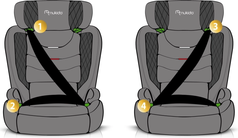 - ISOFIX + ghidaj pentru centură – fixare stabilă și ghidare intuitivă a centurii de siguranță.