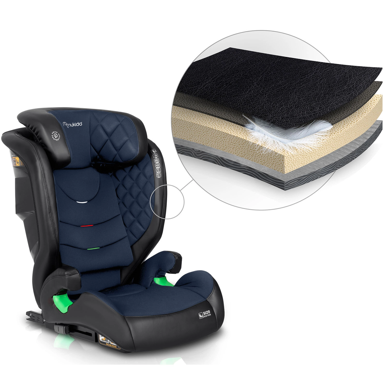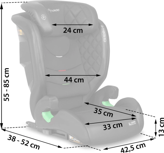 Scaunul auto Nukido Louis este o alegere sigură și confortabilă pentru copii cu înălțimea de 100–150 cm (aprox. 4–12 ani). Respectă standardul ECE R129 i-Size, oferă ISOFIX pentru instalare rapidă și stabilă, 12 niveluri de reglare a tetierei, înclinare în 2 trepte și protecție laterală SIP. Întreținerea ușoară este asigurată de husa ușor detașabilă și lavabilă și de capitonajul premium pentru confort pe termen lung.